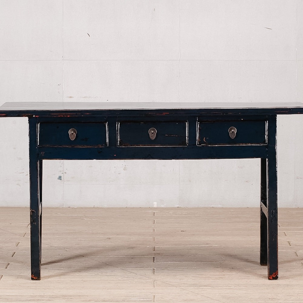 Handcrafted using reclaimed solid Mongolian pine wood over 100 years ago. This antique rustic hall table would make a beautiful addition in an entrance or living space. In a beautiful high gloss finish.