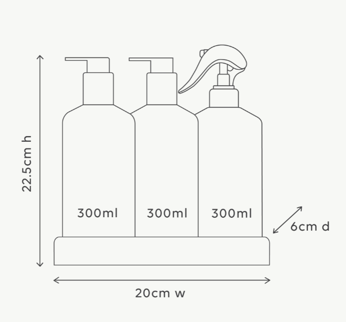 Our 300ml bottles are 100% recyclable and made from HDPE plastic, our trays are made from ABS plastic, for its durability and are designed for longevity
