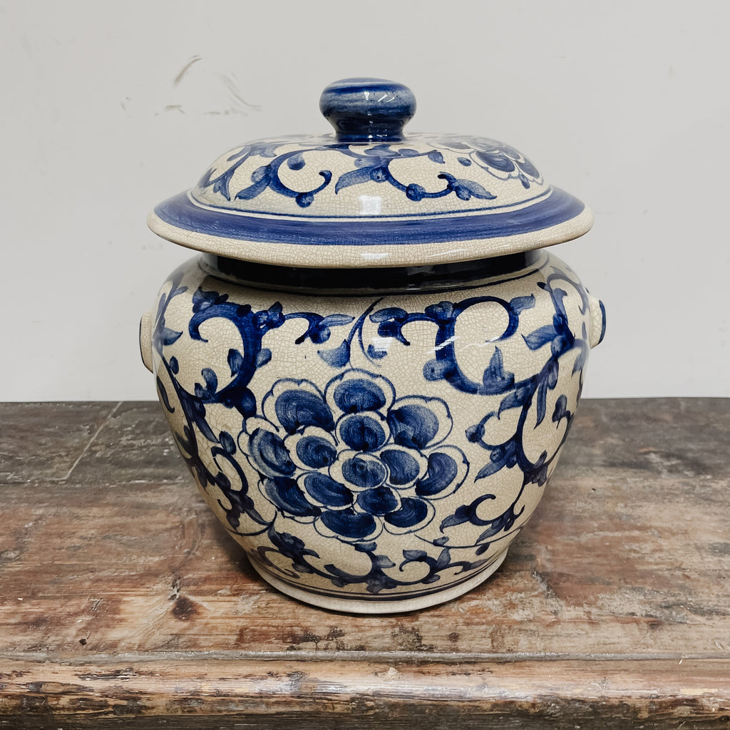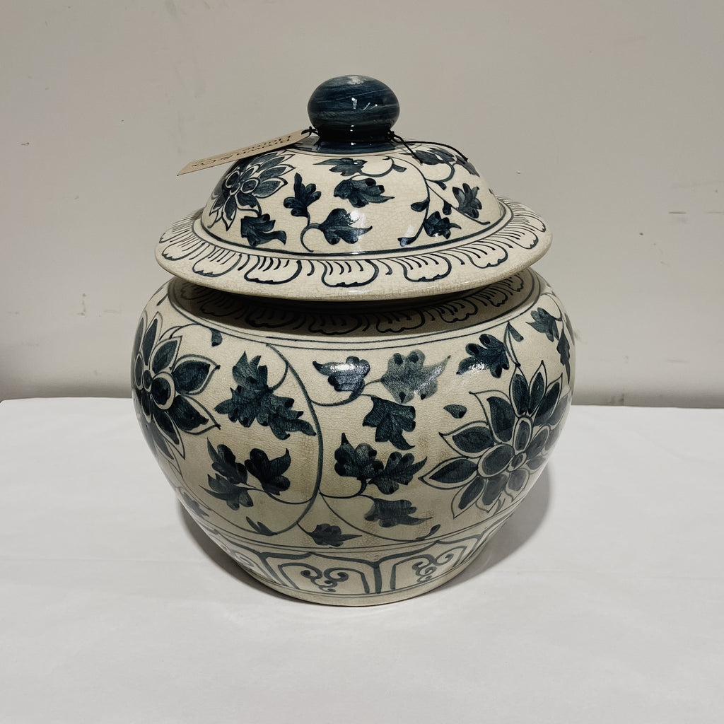 This beautiful blue & white ceramic pot with knob lid is hand painted in Indonesia, making each piece unique. The intricate design adds a touch of elegance to any home decor. Made with high-quality, durable ceramic for long-lasting use.