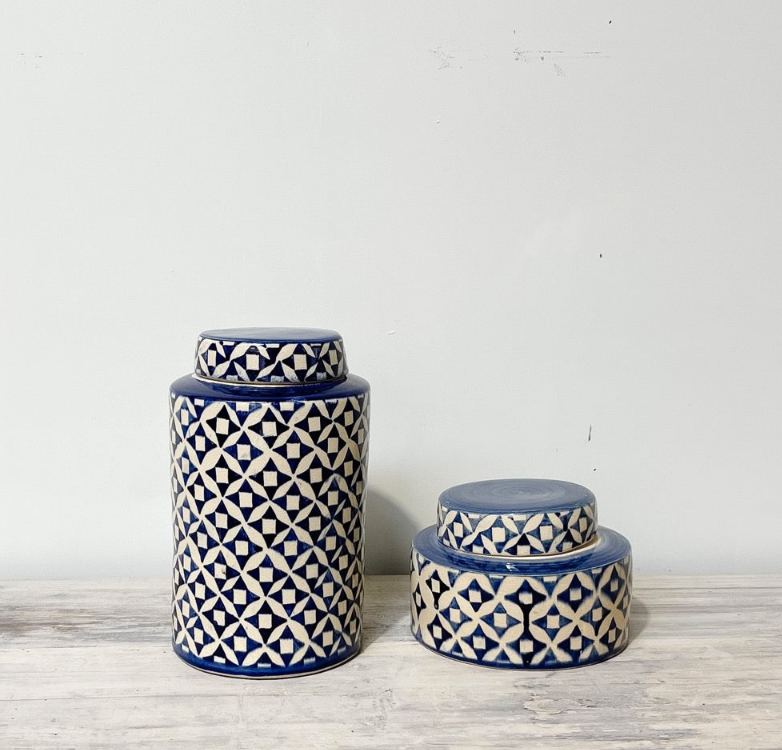 All bowls, plates and jars are hand painted so may vary slightly to the images shown below if we have multiple pieces.