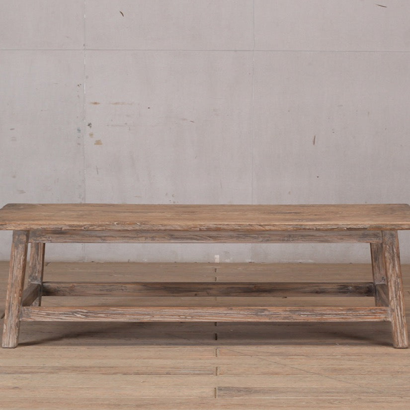 Crafted from reclaimed pine, this coffee table features a natural finish that highlights its unique character and durability. Measuring 1500 x 700 x 420H, it combines rustic charm with functional design for any living space.