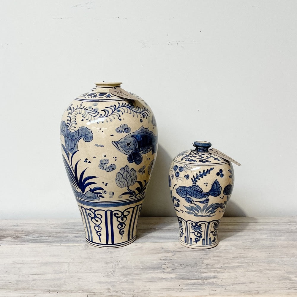 Blue & White Tall Vase w Narrow Lip