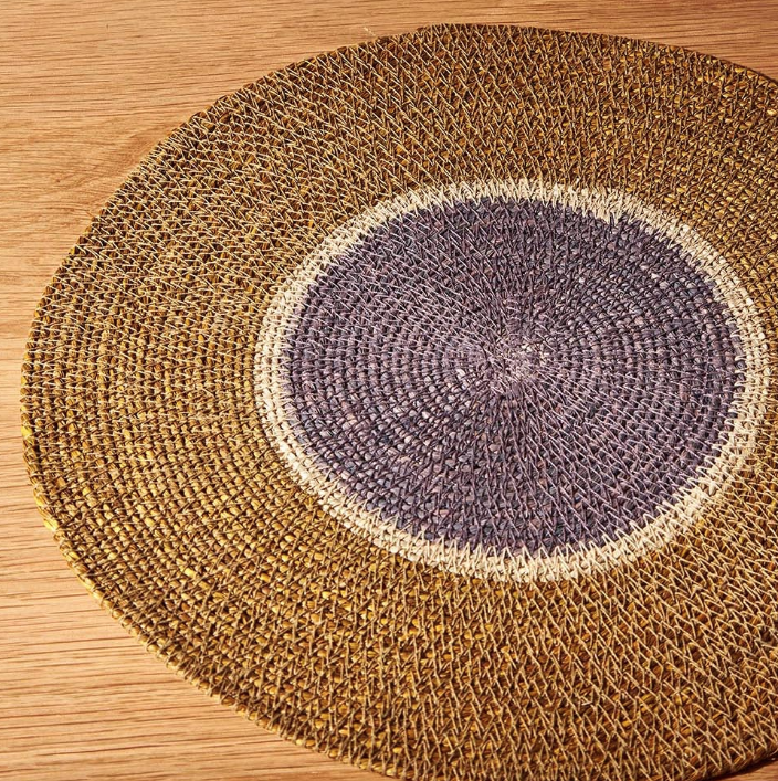 The placemats are handwoven in India using natural seagrass. Traditional weaving techniques celebrate the craftsmanship and create a unique, organic finish.
