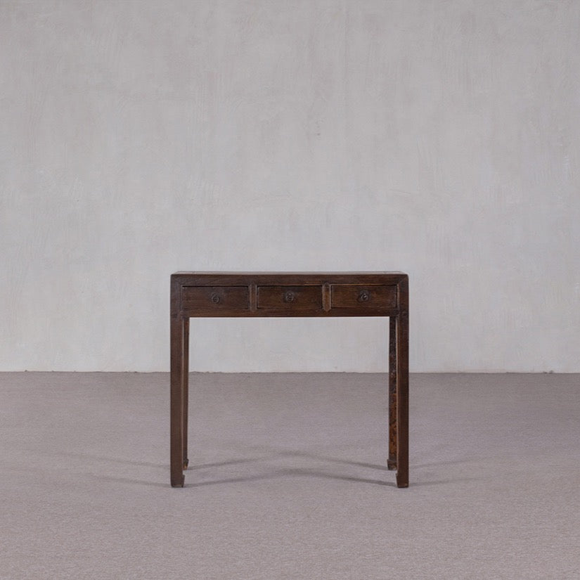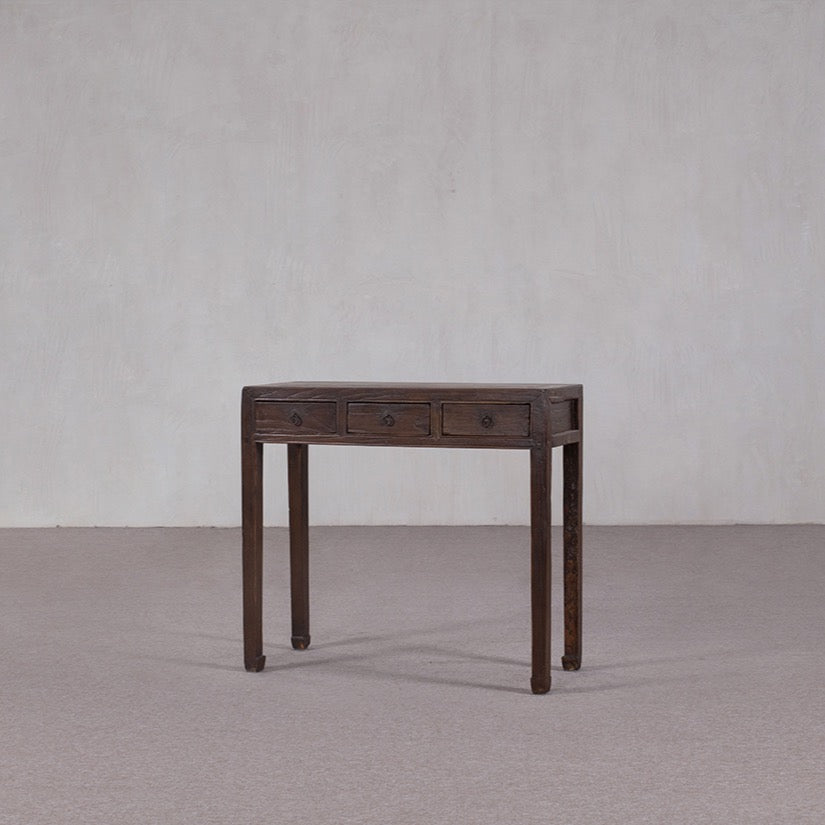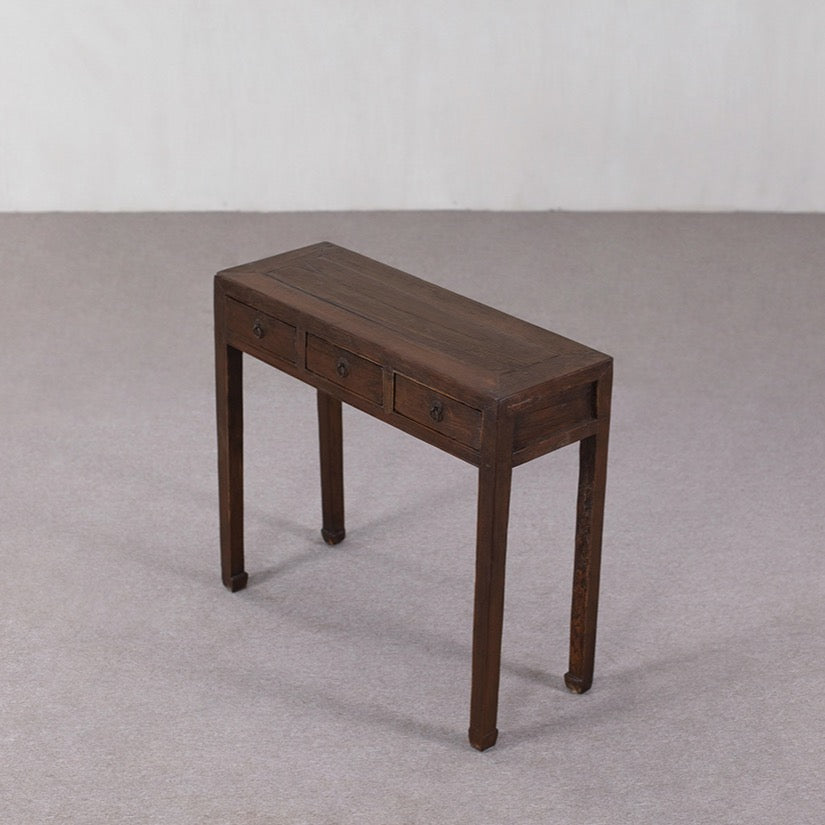 This reclaimed hall table in dark brown finish combines rustic charm with practical design. Measuring 960mm wide, 350mm deep, and 870mm high, it offers a perfect size for entryways or narrow spaces. Crafted from reclaimed materials sourced in Shandong, this piece is both sustainable and sturdy, adding character and warmth to your home’s hallway while providing a durable surface for keys, mail, or decorative items.