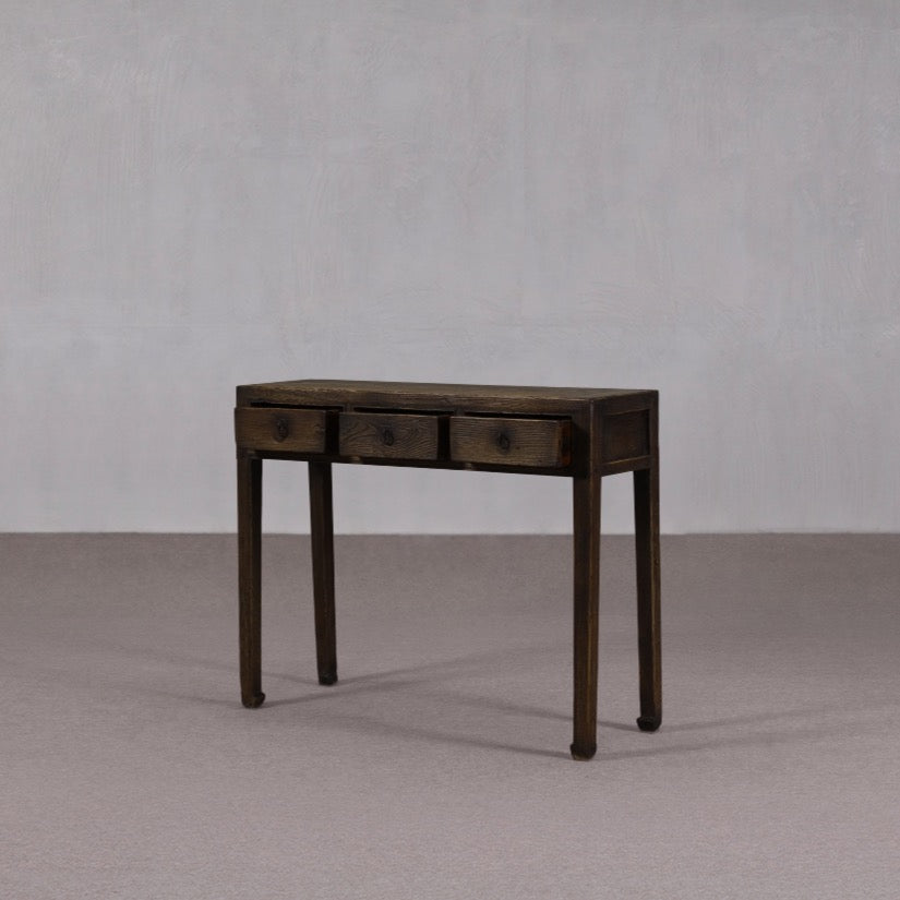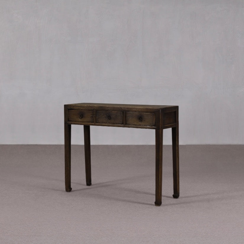 This reclaimed pine side table, sized at 1040mm x 350mm x 840mm, offers a perfect balance of practicality and rustic charm. Its sturdy construction from reclaimed wood provides durability and an environmentally conscious choice. The slim profile fits well into various spaces, delivering both function and subtle warmth to your interior with its natural wood grain and solid build.